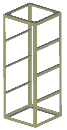 上图为机柜抗震结构图,机柜抗震结构采用5×5×50角钢或更厚的角钢焊接加工而成,机柜框架则选用2.5mm厚的不锈钢焊接制作。机柜框架(含门板)表面作静电喷涂处理(统一使用室外粉喷涂),机柜前门为钢化玻璃门,其他门可拆卸但不开通风孔,防护等级达IP55。